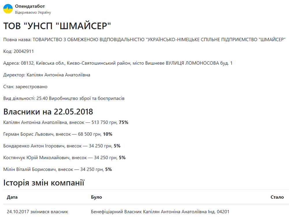 Согласно данным платформы Opendatabot, Борису Львовичу принадлежит 10% акций единственного негосударственного предприятия по производству оружия в Украине.