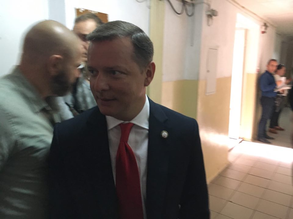 10:40  Тем временем Ляшко с группой поддержки (Лозовой, Рыбалка и т.д) зашёл в зал заседаний и через 5 минут покинул его. Он подписался по заявлением тех, кто хочет взять Омеляна на поруки, и отбыл.