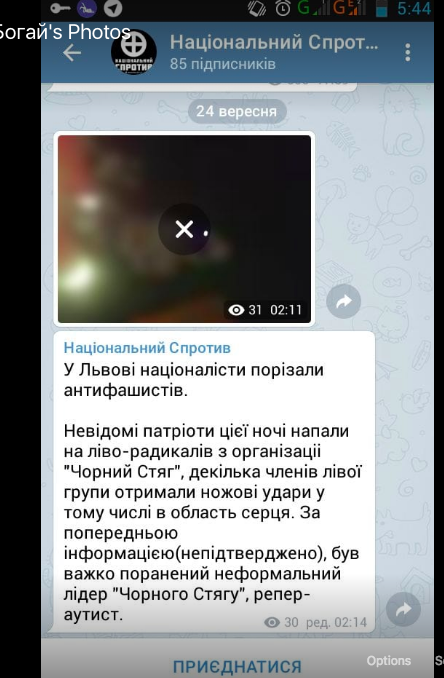 "Національний спротив" запостил у себя новость о нападении на "антифашистов"