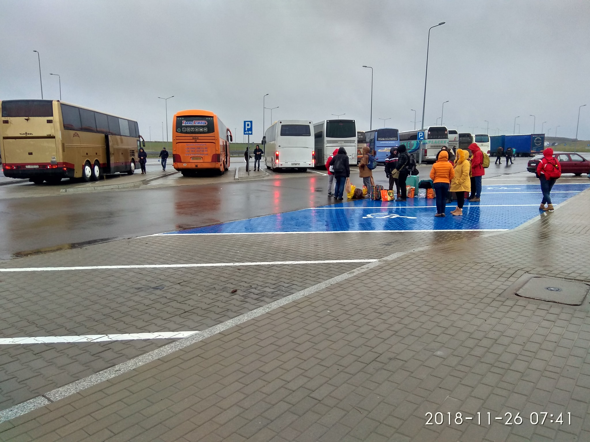 Как рассказал нам путешественник Олег Дамбровский, и сейчас в КПП "Краковец" стоят почти полсотни рейсовых автобусов.