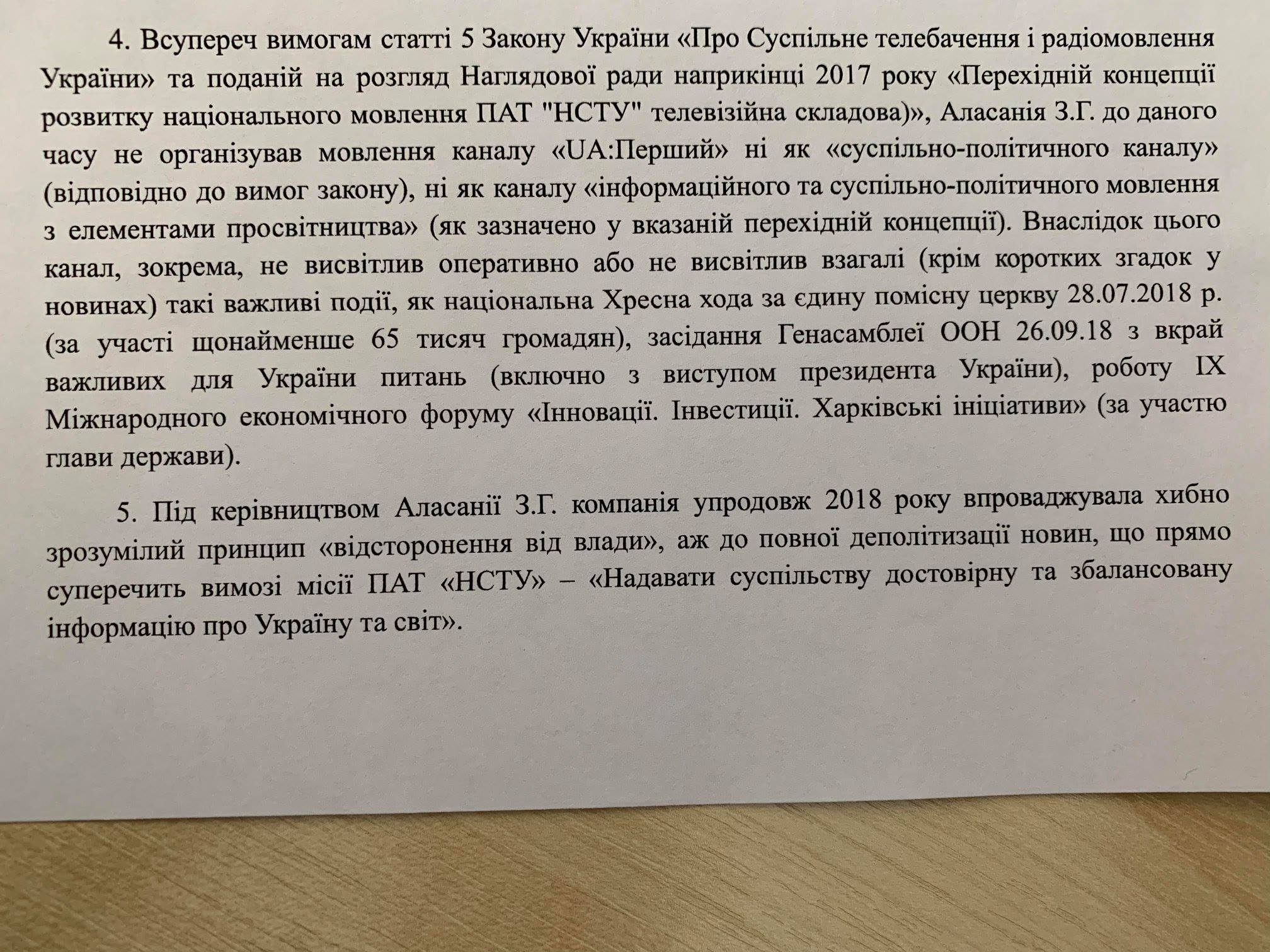 "Отменить результаты голосования о расторжении контракта с Зурабом Аласанией как содержащие процедурные нарушения и не оформленные в соответствии с требованиями закона об Общественном телевидении и радиовещании Украины и не позволяют установить точный результат голосования", - отмечает Глибовицкий.