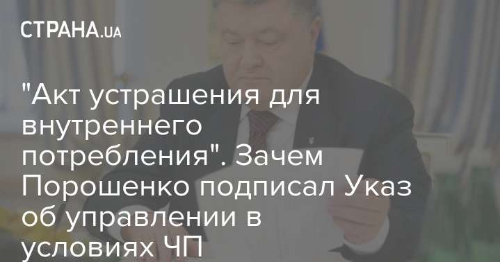 По словам политолога Константина Бондаренко, этот Указ, по задумке Порошенко, должен выполнять функцию устрашения. Но не внешнего врага, а внутреннего.