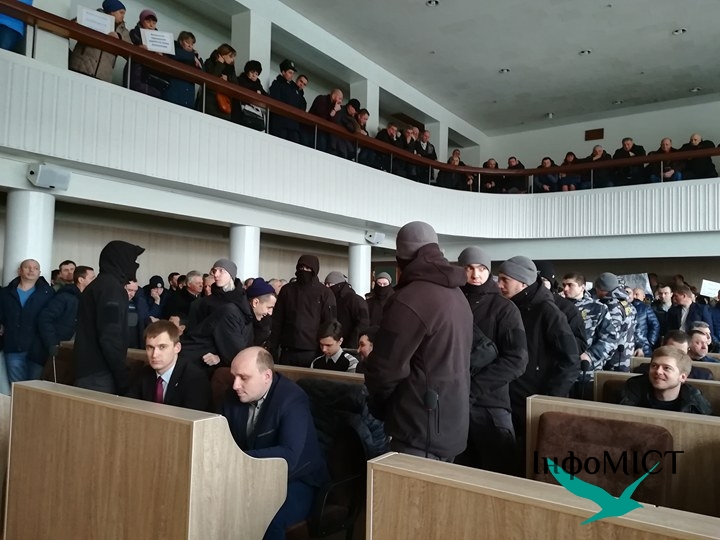 В такой гнетущей атмосфере и начали собираться на сессиию 29 января черкасские депутаты. Но едва они заняли свои места в помещении Приднепровского райсовета, как в зал вошли и встали между рядами неизвестные в камуфляже и тактической одежде.