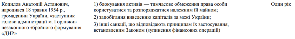 Профайл Копылова в "санкционных списках" СНБО 2016-2018 годов, источник фото: rnbo.gov.ua