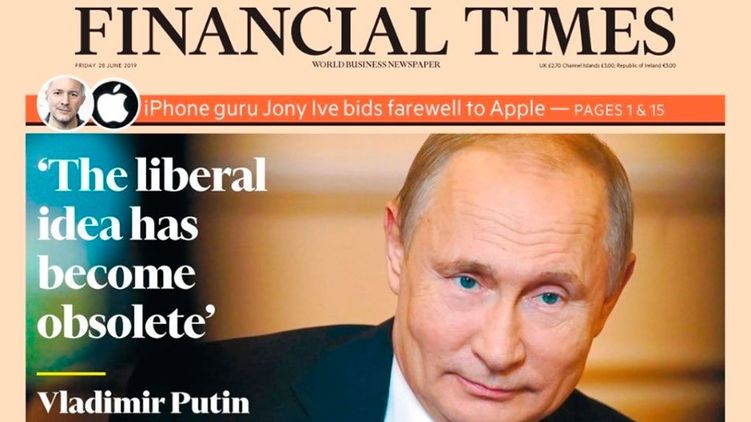 Не удивительно, что из всего большого интервью с Путиным вышедшего аккурат в день начала саммита G20 в Осаке, редакторы Financial Times вынесли на первую полосу именно цитату российского лидера о том, что "либеральная идея утратила актуальность" (другой перевод фразы The liberal idea is obsolete – либеральная идея почила в Бозе). И второй вариант мне нравится больше.