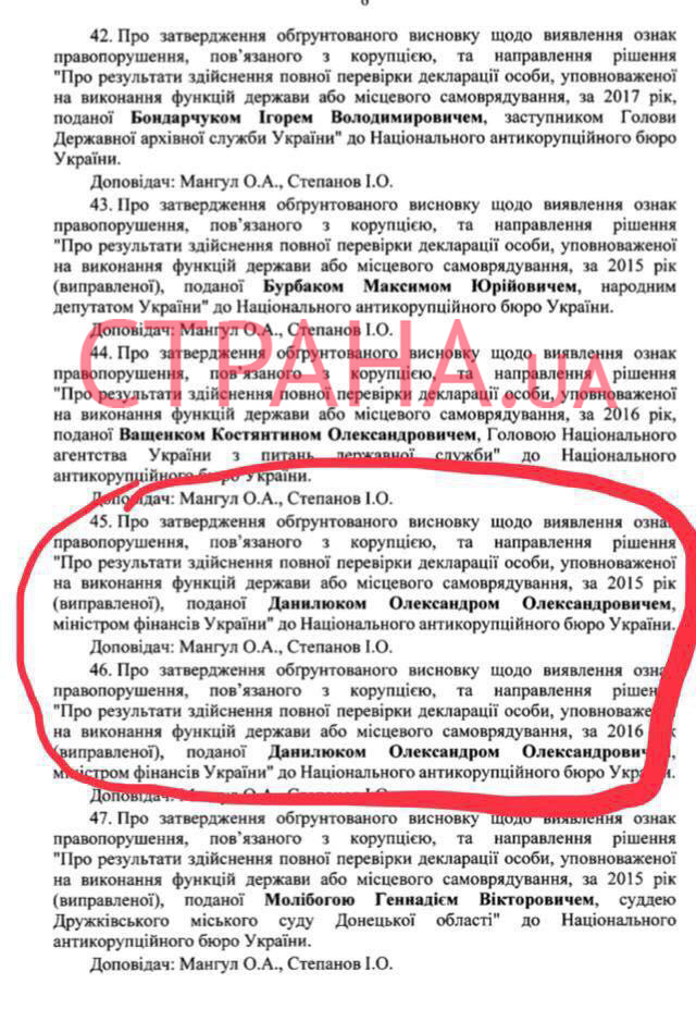 И как раз сегодня состоялось заседание НАПК, на котором было принято решение передать информацию о коррупционном правонарушении Данилюка в НАБУ. Что может стать основой для возбуждения против него уголовного дела.