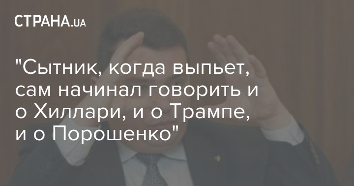 "Я ему тоже, ну, не ему, а Хиллари помогал... Трамп он же как. У него внутренний вопрос доминируют над внешним, а у Хиллари все как бы, это из тех политиков, они гегемония в Америке и в мире. Для нас это как бы лучше, а для американцев лучше то, что Трамп делает ... Я когда черную бухгалтерию расследовал, мы же обнародовали данные Манафорта, которого посадили. Манафорт это же был руководителем штаба Трампа", — говорилось на аудиозаписи. Скорее всего, запись была сделана именно на базе "Полесье-Сарны", где Сытник в компании Надейко праздновал новый 2019 год.