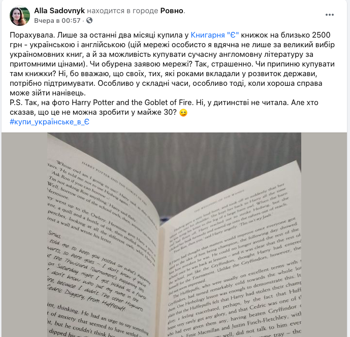 Другие же поклонники сети, хоть и огорчены ее решением начать продавать российские книги, наоборот встали на ее защиту и даже запустили флешмоб в поддержку “Книгарня Є”.