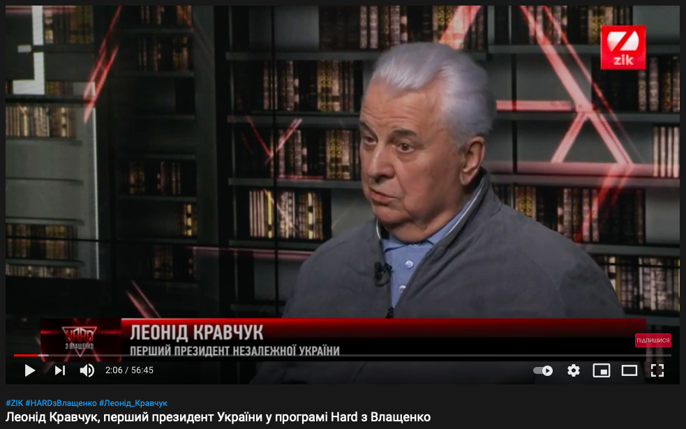 "Я хотів це сказати на початку, за 28 років це вперше! На телеканалі NewsOne запросили першого президента вперше в історії, щоб він поділився своїми думками. Всі останні канали чогось цього не зробили. Я щиро вам дякую!", – заявлял Кравчук в эфире.