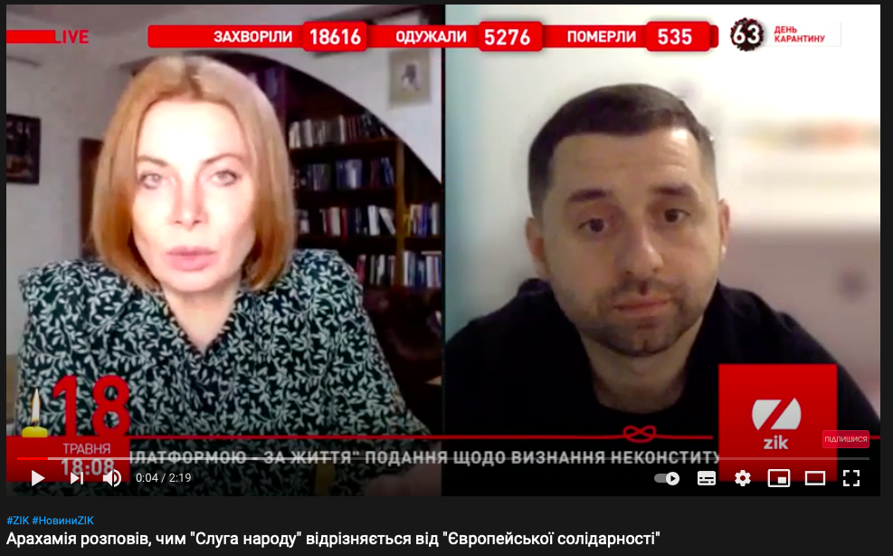 Не многим отличается и глава фракции "Слуга народа" Давид Арахамия, который оправдал закрытие украинских телеканалов "войной с Россией". Хотя до этого почему-то не брезговал давать комментарии "вражеским" СМИ.
