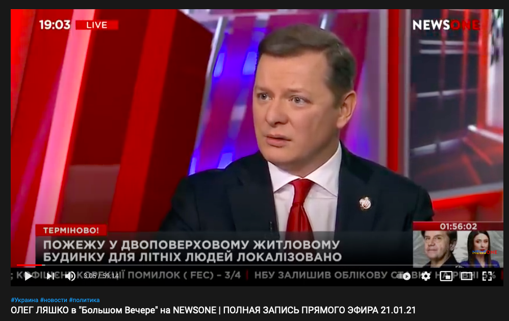 Но самое интересное, что Олег Ляшко был в эфире телеканала ZIK буквально за несколько часов до того, как выпустил свой видео-ролик "за" блокировку этого и двух других телеканалов, где был частым гостем.
