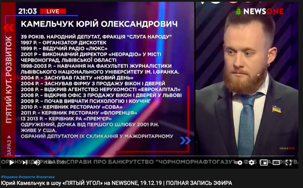 Юрий Камельчук тоже высказался за запрет трех телеканалов, назвав их деятельность "информационной атакой" на Украину. Хотя очень часто сам был гостем различных ток-шоу. Можно ли полагать, что таким образом народный депутат также участвовал в "информационных атаках" этих телеканалов – вопрос открытый.