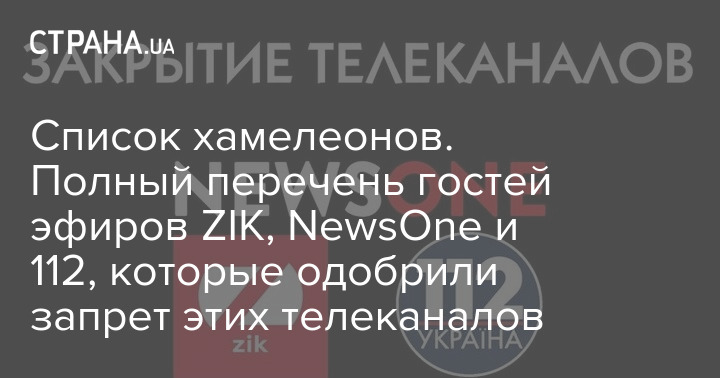 Поэтому "Страна" решила составить новый, более полный список, в который вошли не только политики, но и другие гости эфиров (чиновники, депутаты, эксперты, лидеры мнений), которые появлялись на телеканалах NewsOne, "112" и ZIK – а теперь радуются тому, что их заблокировали.