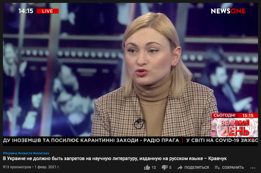 Хотя сама присутствовала на ток-шоу телеканала NewsOne всего три недели назад, и об этом не было ни слова. Неделю назад она была на ZIK, а в эфире "112" канала Мошенец выступала прямо в день блокировки - 2 февраля.