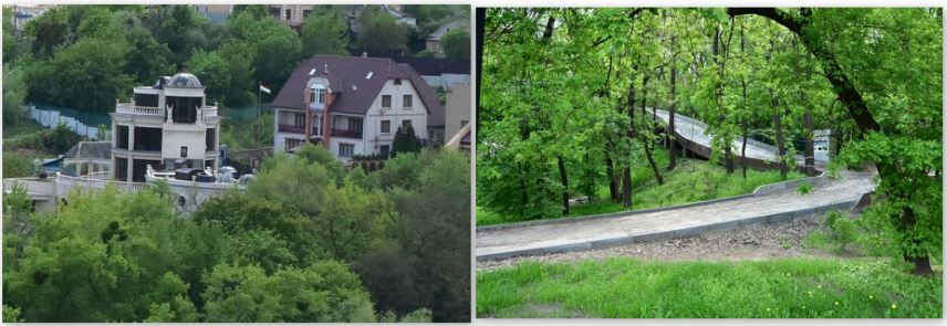 На склонах Днепра, возле ботанического сада с видом на "Родину-Мать" живут одни богатые и знаменитые. В элитном микрорайоне Зверинец или Царское село, как называют эту местность в народе, сейчас полным ходом идет строительство, несмотря на кризис в стране. Корреспонденты "Страны" обратили внимание, что на баптистскую церковь, куда ходит секретарь СНБО Александр Турчинов, установили купола. А к одному из особняков проложили персональную эстакаду.