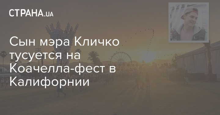 Каждый год в апреле американский город Индио (штат Калифорния) наполняется весельем. Сюда съезжаются меломаны со всей Америки и из заграницы на фестиваль Coachella, чтобы послушать любимые группы и потусоваться. В этом году на фестиваль приехал Егор-Даниэль Кличко, старший сын мэра Киева. Об этом парень сообщил в своем фотоблоге Instagram.