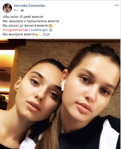 "Мы жили 10 дней вместе! Мы засыпали и просыпались вместе! Мы дошли до финала вместе! Поздравляю, Леонила Гузь. Мы выиграли вместе. Ты знаешь, как я в тебя безумно верю и люблю", - написала Дидусенко.