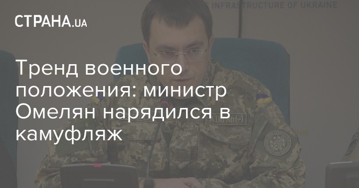Владимир Омелян, министр инфраструктуры сегодня явился на заседание в своем ведомстве в камуфляжной форме. Министр, а он же супруг дизайнера Светланы Бевзы, заявил, что в связи с введением военного положения в 10 областях Украина вводит дополнительные меры по обеспечению охраны и обороны объектов инфраструктуры.