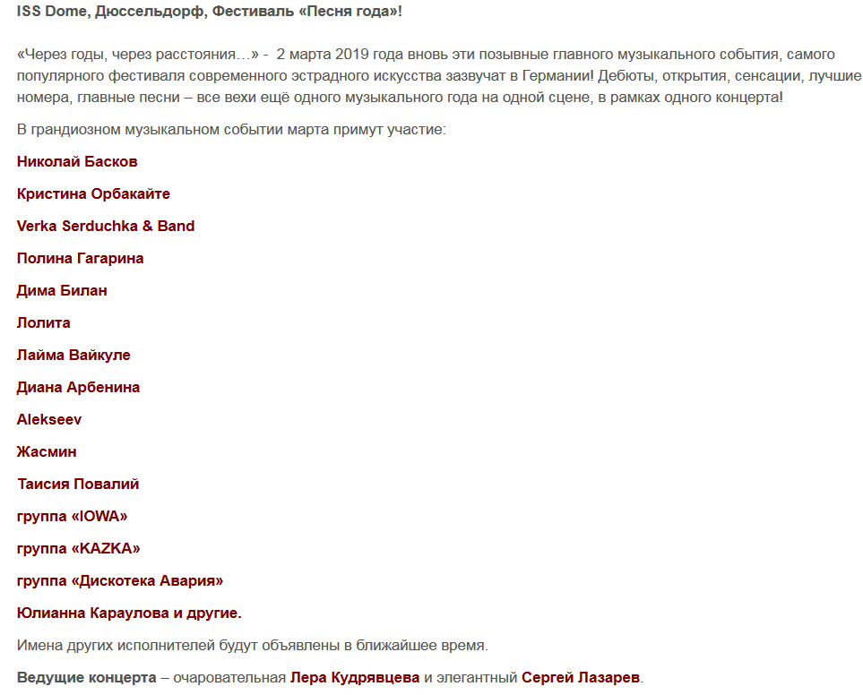 В начале декабря на одном из ресурсов, реализующих билеты на шоу "Песня года", что состоится в Дюссельдорфе (Германия) появился список участников концерта, среди которых была и наша украинская группа.