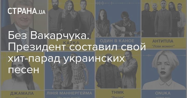 Также Петр Алексеевич поделился с подписчиками своими музыкальными вкусами и выделил ТОП-7 песен украинских исполнителей. Отметим, что среди них есть хит "Плакала" группы КАZКА, но нету ни одной композиции "Океана Эльзы" или кого-то из тех, кто исполняет попсу (популярную музыку). Хотя в прошлом году Порошенко отметил Тину Кароль и ее песню "Перечекати".