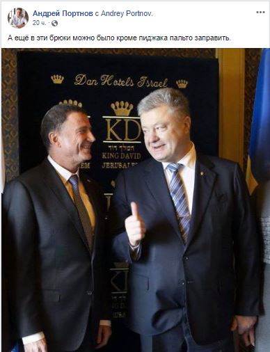 Известный юрист и правозащитник Андрей Портнов запостил себе на страницу в социальной сети Facebook одно из фото, которое взял на официальном портале гаранта и подписал: "А еще в эти брюки можно было кроме пиджака пальто заправить".