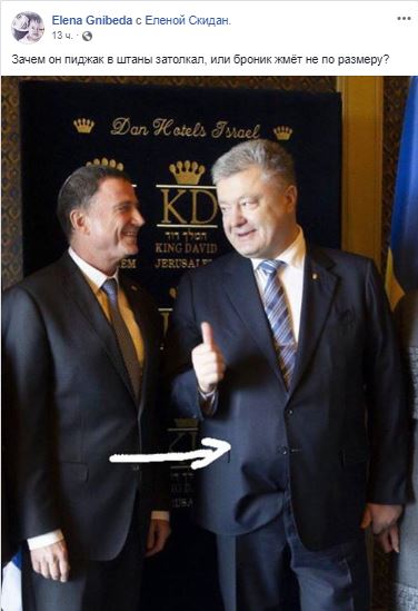 Снова всплывает версия про бронежилет. В этом вопросе мы уже разбирались и общались с экспертами. Источник из государственной охраны объяснил "Стране", что даже бронежилет "скрытого ношения" не способен "выпирать из-под верхней одежды". "Обычно для таких целей используют бронежилет в виде костюмной жилетки. И, кстати, чем выше класс защиты, тем толще пулезащитный пакет, тем сложнее скрыть бронежилет под одеждой", - рассказывал наш собеседник. При этом он отрицает, что Порошенко носит бронежилет под одеждой.