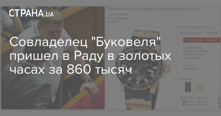 Партнер Игоря Коломойского и совладелец горнолыжного курорта "Буковель" был замечен в парламенте 16 июня с дорогим аксессуаром. Фотокорреспонденты "Страны" увидели на запястье нардепа Александра Шевченко Ulysse Nardin за баснословную сумму.