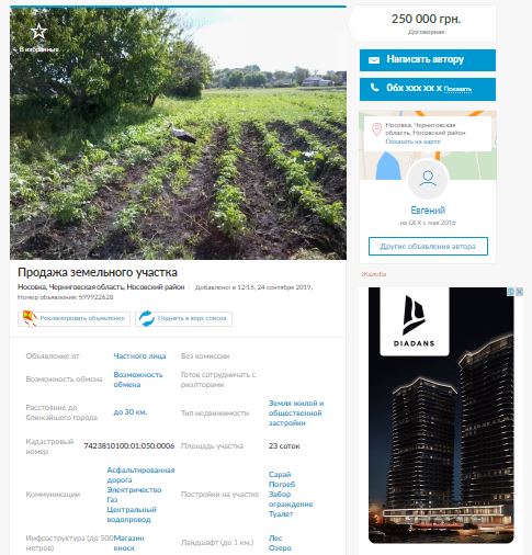 Мы нашли свежее объявление, где 23 сотки под строительство стоит 250 000 гривен или около $10 000.