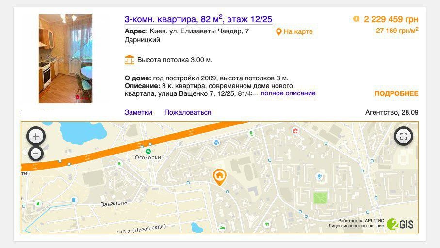 Это 25-этажная новостройка, где у мамы Ляшка есть теперь квартира на первом этаже. За квадратный метр просят здесь 27 189 гривен или около $1100.