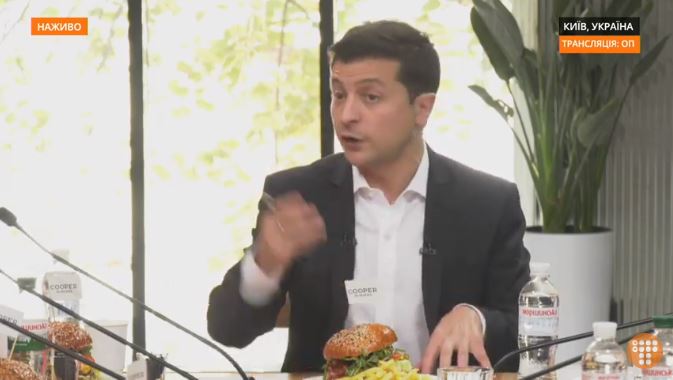 Зеленский и бургер, скрин-шот прямой трансляции
