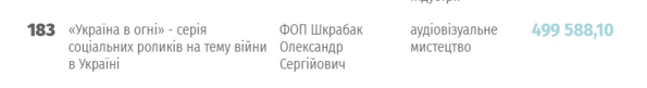 Несколько грантов по полмиллиона УКФ выделил  проектам, посвященным военной тематике. Почти полмиллиона получил известный блогер-атошник и "порохобот" Мирослав Гай на свой проект "Док на приеме":
