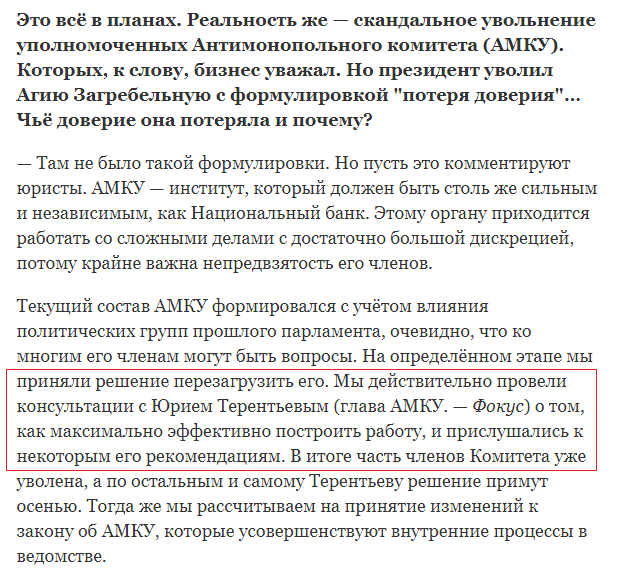 Гончарук рассказал, что кадровые решения в отношении АМКУ принимались на основании пожеланий Юрия Терентьева: "Мы действительно провели консультации с Юрием Терентьевым (глава АМКУ. - Фокус) о том, как максимально эффективно построить работу, и прислушались к некоторым его рекомендациям":