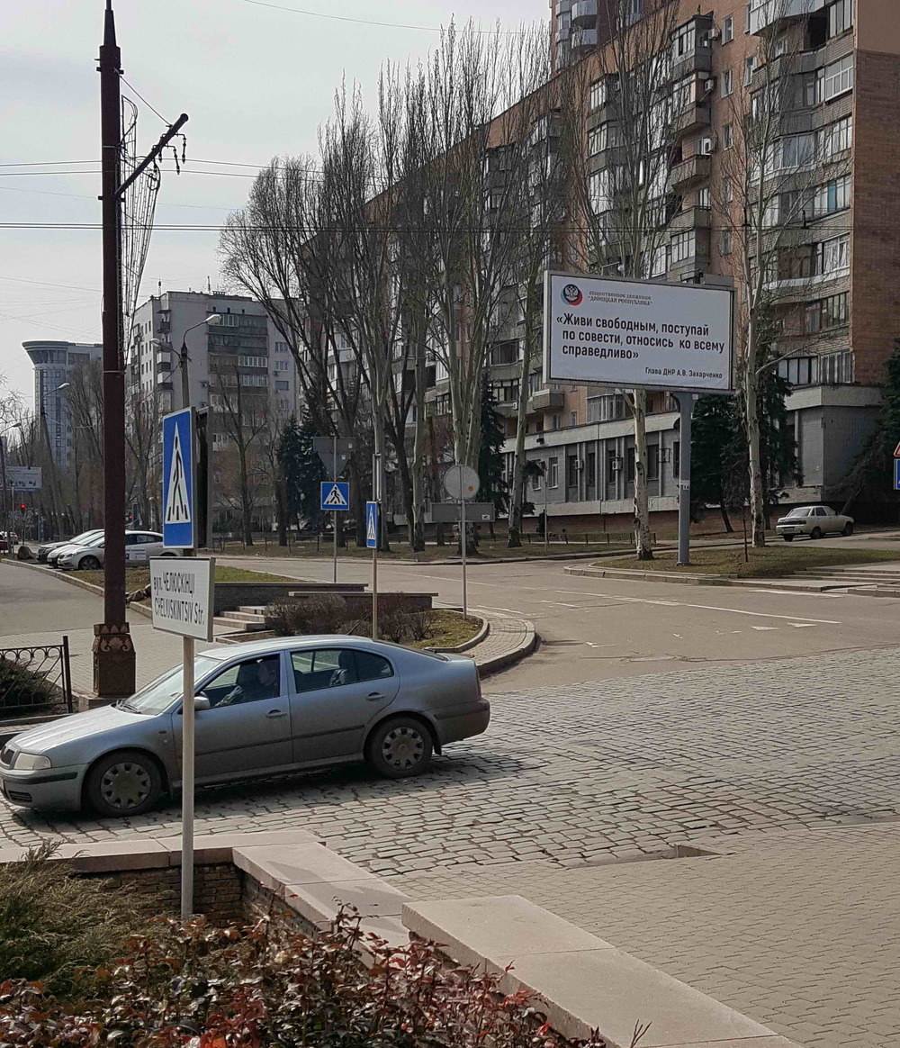 Поначалу кажется, что на всех донецких билбордах – исключительно высказывания Александра Захарченко. Присмотревшись, замечаешь и другое. Мы провели специальный подсчет, пройдясь по нескольким центральным улицам – Артема, Университетской, Челюскинцев, проспекту Ильича.