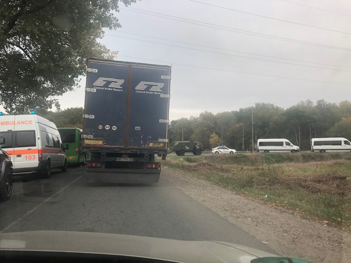 По дороге из Нежина в Ичню двигается колона из двух армейских грузовиков и двух машин полиции.