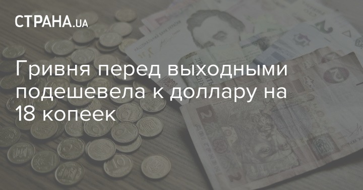 Гривня перед выходными подешевела к доллару на 18 копеек