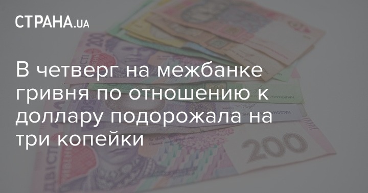 В четверг на межбанке гривня по отношению к доллару подорожала на три копейки