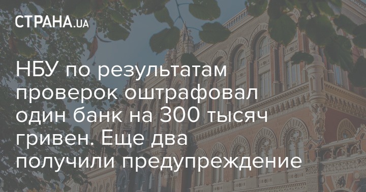 НБУ по результатам проверок оштрафовал один банк на 300 тысяч гривен. Еще два получили предупреждение