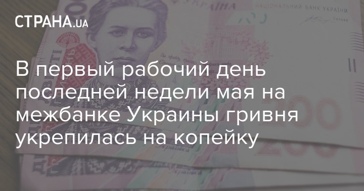 В первый рабочий день последней недели мая на межбанке Украины гривня укрепилась на копейку
