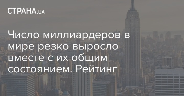 За прошлый год число миллиардеров в мире достигло 2825 человек, что на 221 больше, чем в 2018 году. Совокупная стоимость их состояний достигла $9,4 триллионов после увеличения на 10,3%. При этом в 2018 году количество состоятельных людей сократилось на 5,4%, а стоимость их состояний на 7%.
