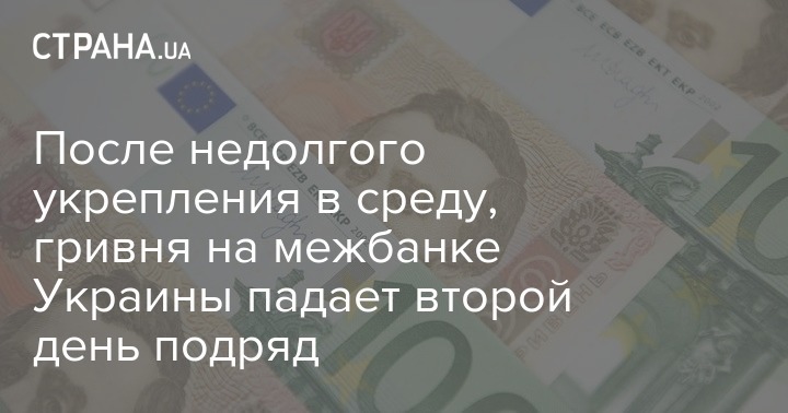 После недолгого укрепления в среду, гривня на межбанке Украины падает второй день подряд