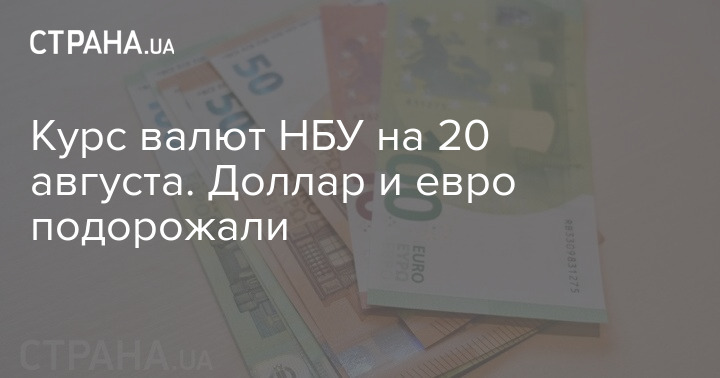 Курс валют НБУ на 20 августа. Доллар и евро подорожали