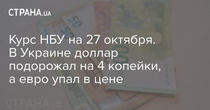 Курс НБУ на 27 октября. В Украине доллар подорожал на 4 копейки, а евро упал в цене