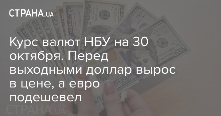 В пятницу, 30 октября, Национальный банк Украины установил официальный курс на уровне 28,43 грн/$1, что на 4 копейки больше, чем в предыдущий рабочий день.
