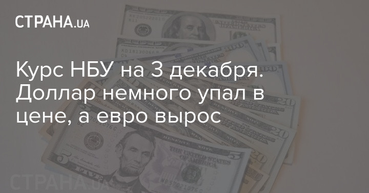 Курс НБУ на 3 декабря. Доллар немного упал в цене, а евро вырос