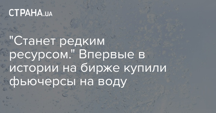 Теперь, кроме золота и нефти, на Wall Street торгуют еще и водой. Экологическое состояние планеты может привести к тому, что вода станет редким ресурсом, первые фьючерсы на воду уже приобрели.