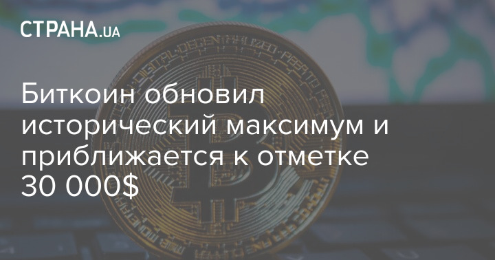 Биткоин обновил исторический максимум и приближается к отметке 30 000$