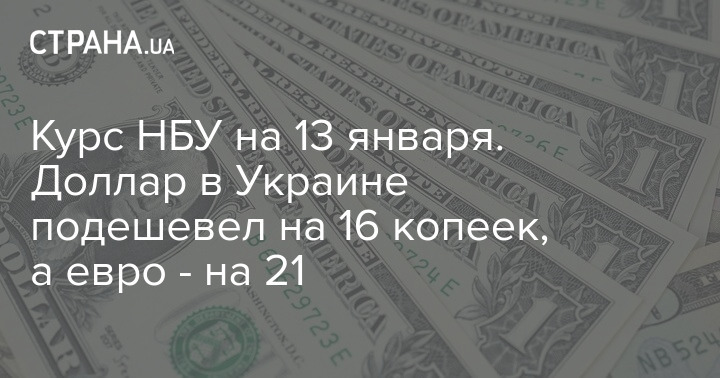 Курс НБУ на 13 января. Доллар в Украине подешевел на 16 копеек, а евро - на 21