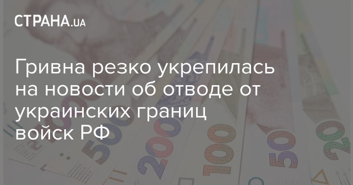 Новость об отводе российских войск от границы Украины спровоцировала резкое укрепление гривны на межбанковском рынке.