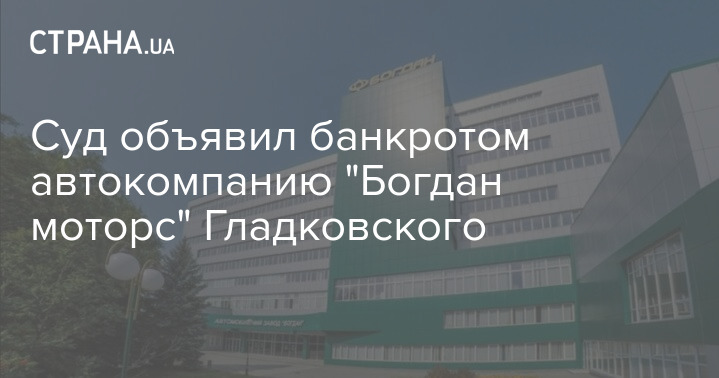 Во вторник, 6 июля, Хозяйственный суд Днепропетровской области признал банкротом и начла процедуру ликвидации автомобильной компании "Богдан моторс", которая принадлежит бывшему первому заместителю секретаря СНБО Олегу Гладковскому, также известному под фамилией Свинарчук.