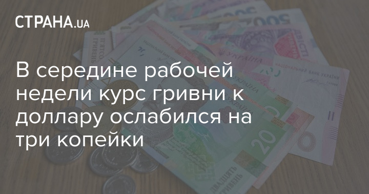 В среду, 21 июля, курс гривни на межбанковском валютном рынке ослабился на три копейки - до 27,24 грн/$1 с 27,21 грн/$1 в предыдущий рабочий день. Котировки национальной валюты на закрытие торгов составили 27,23-27,25 грн/$1.